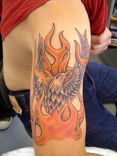 And while fire tattoos look exceptional by themselves, we commonly see fire artwork combine with other designs such as the devil or other demonic art, as well as the mythical bird known as the phoenix which is typically portrayed with flames.